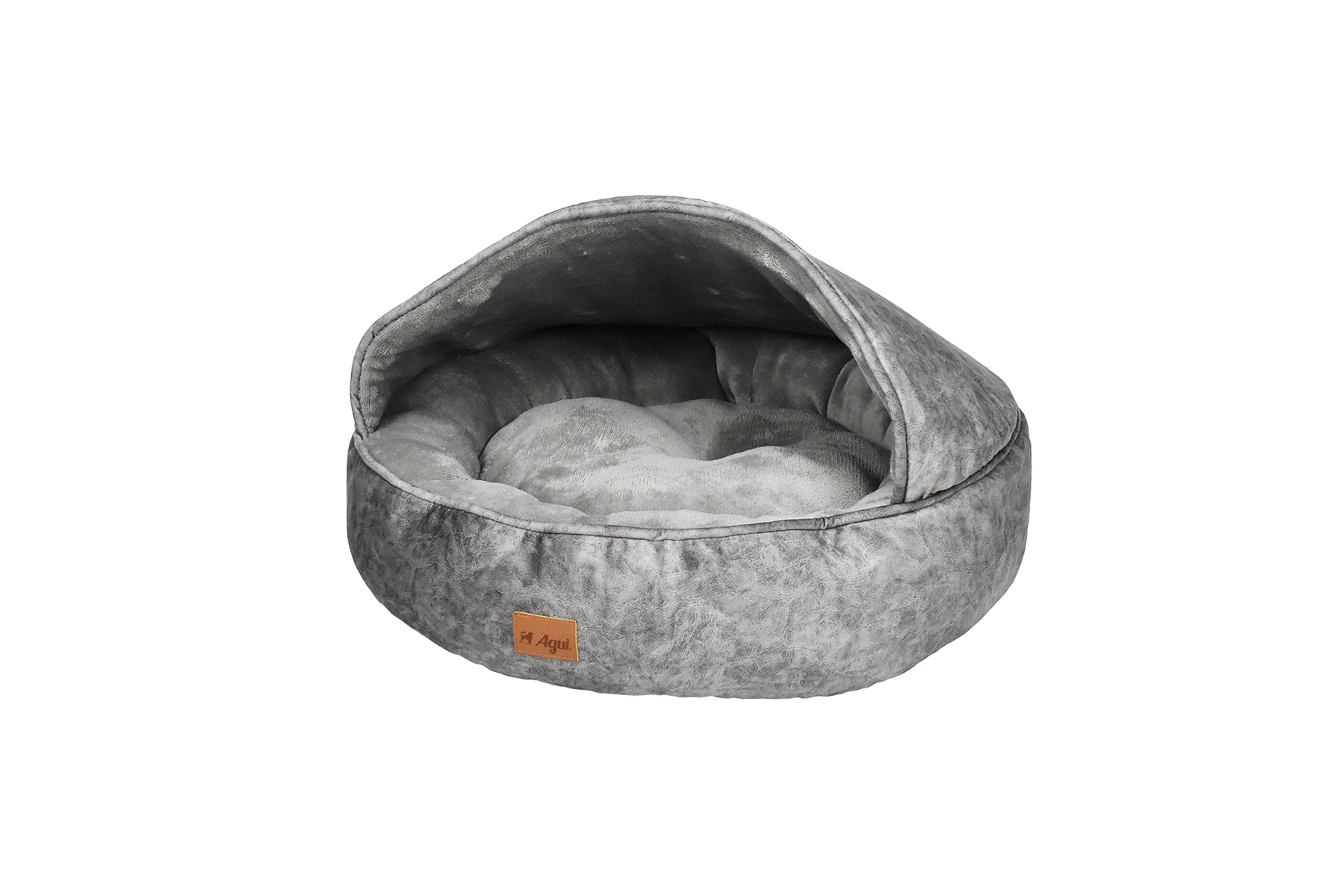 Iglo produzido em tecido de camurça com logotipo em pele. Interior e colchão interior forrados em suave pêlo sintético.